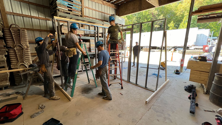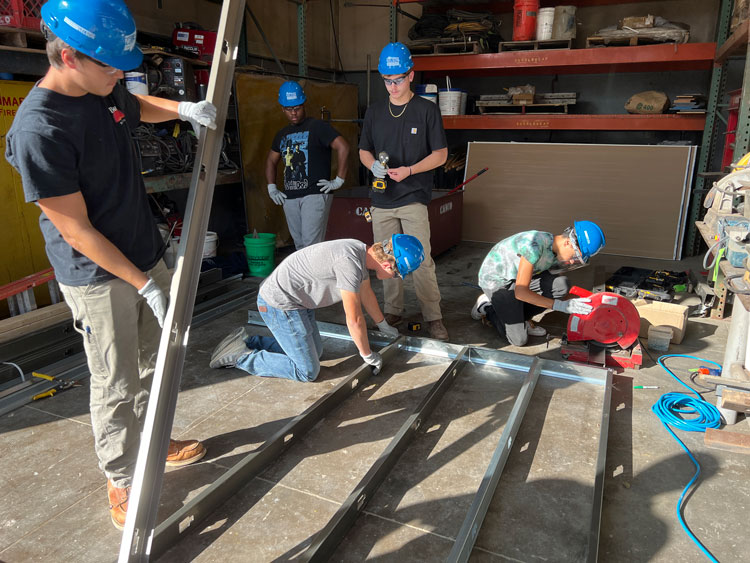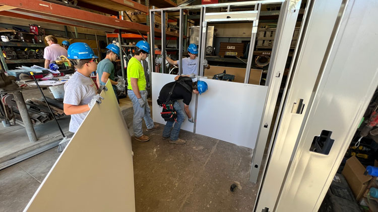 Construction trades students from five SE Iowa high schools were given the task to frame and drywall adjoining metal stud walls with window, door openings.