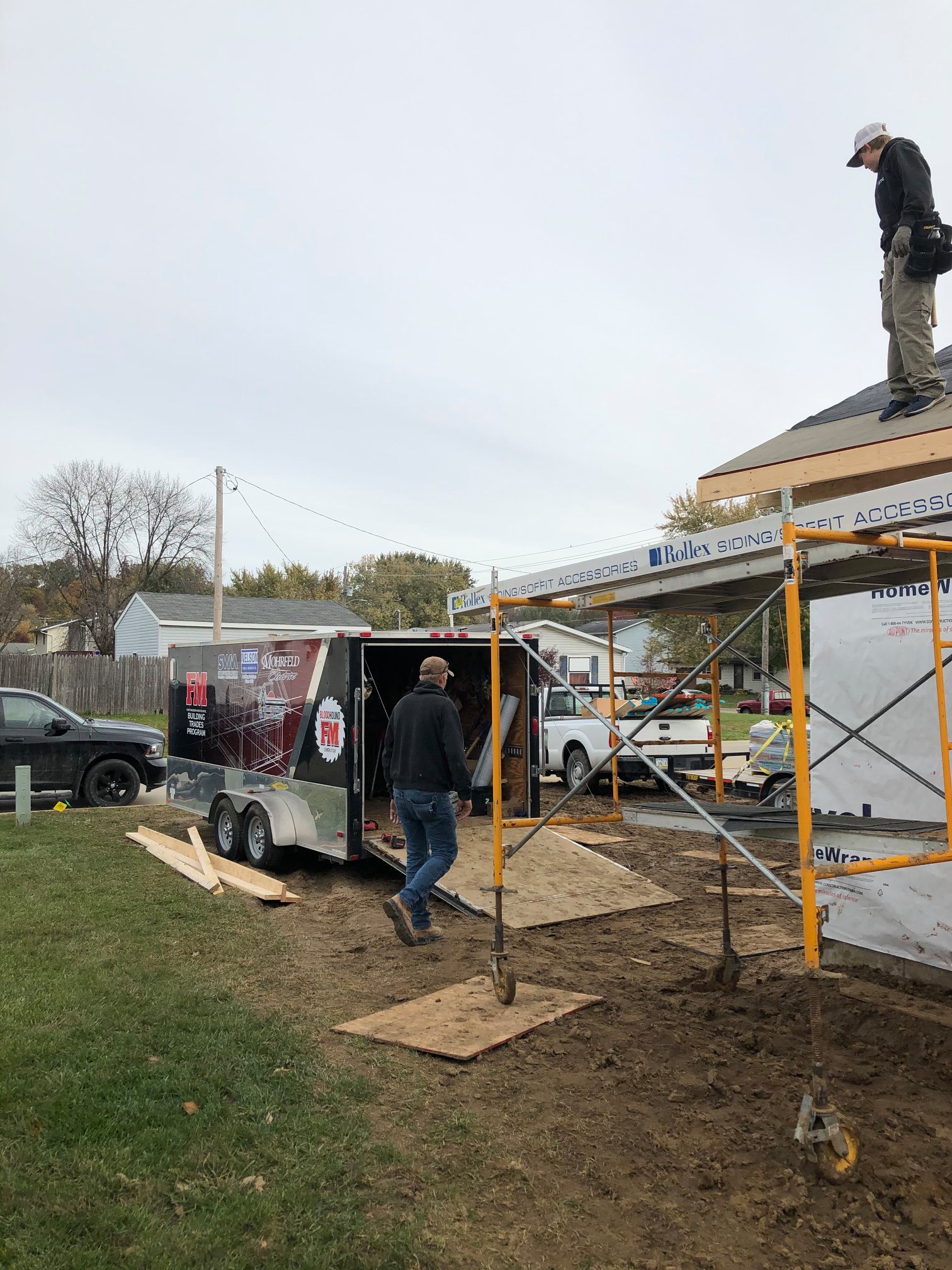 Student builders at FMHS were trying to get dried-in on the house the class is building in Fort Madison, Iowa, and wanted to borrow a couple of CANCO employees -- Fort Madison alums Elton Kruse and Aaron Barnes -- for a day to get the roof on.