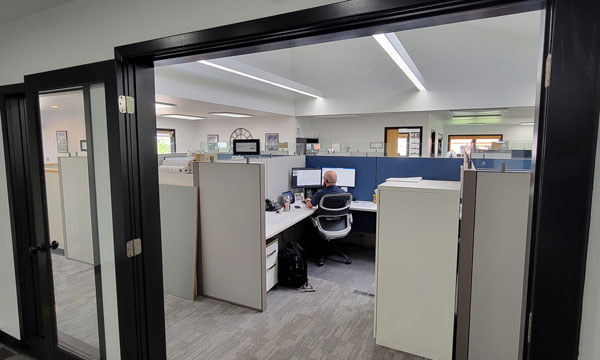 Located in a building originally designed and constructed as a commercial color lab for a local photography company, the new North office facility offers space on three levels, and required only a small investment to be made move-in ready. Compared to the previous location, the new office is a significant change, with an open floor plan rather than private offices; and a large conference/training room, among other more user-friendly spaces.