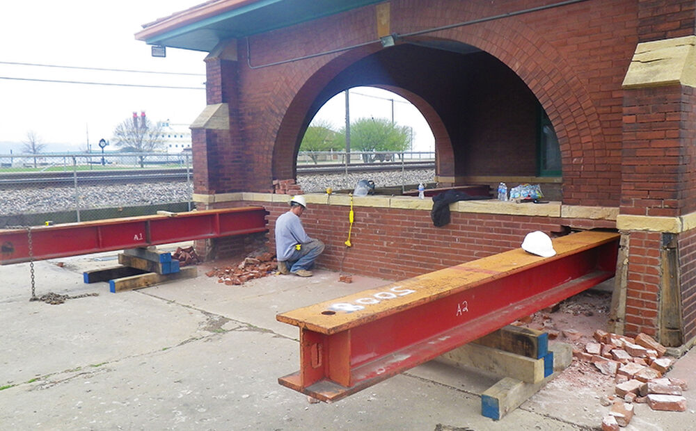 The City of Fort Madison, in collaboration with BNSF, implemented a program to restore the old Santa Fe station built in 1910 for a new Amtrak waiting room and ticket office. The remainder of the building would continue to be used by the North Lee County Historical Society for museum exhibition and storage space. Due to recent flooding, the city decided to raise the historic brick building approximately four feet to an elevation above the 500 year flood level.