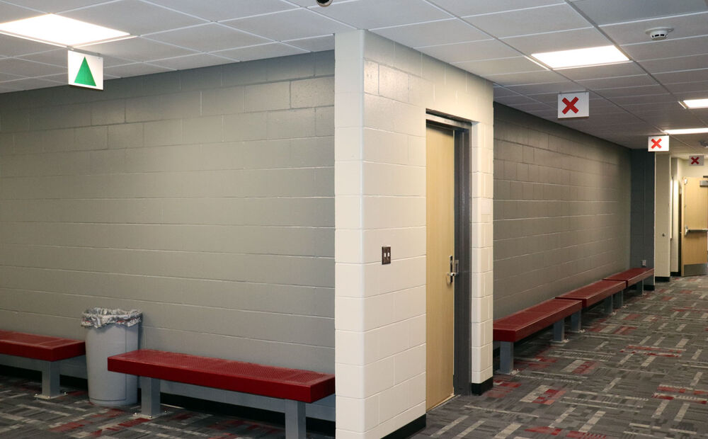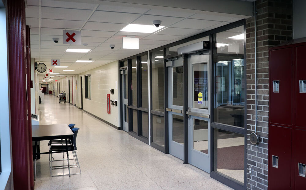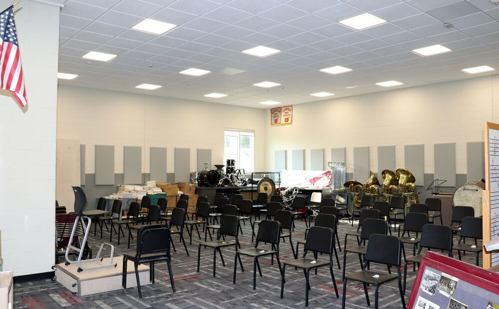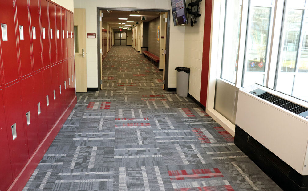 Remodeling included the addition of new flooring, paint, doors and ceilings, upgrades to the Family Consumer Sciences classroom and locker room showers, ADA restrooms, new data cabling and servers, and installation of security features in the main entrance to the school.