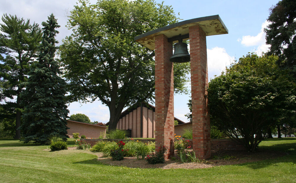 Flanking either side of the sanctuary, are two wings with curved walls for added architectural appeal. The east wing houses a kitchen and social hall while the west wing is comprised of Sunday school rooms and a pre-school area.