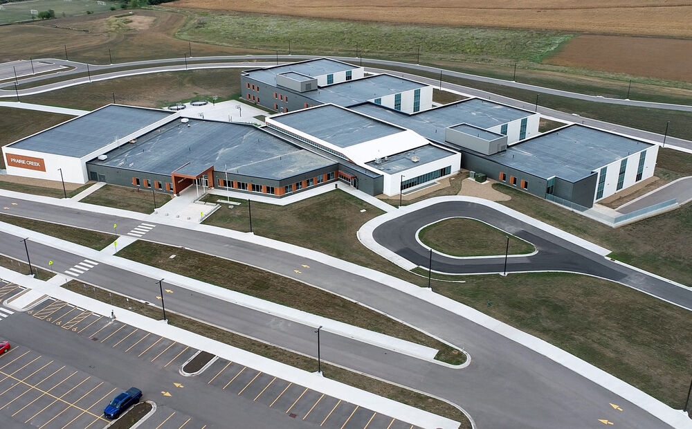 The Board of Education of the College CSD, which serves rural communities and suburbs south of Cedar Rapids, Iowa, as well as areas on the city's south side, selected Carl A. Nelson & Company as its construction manager for a new, $42.5 million and 189,500 SF intermediate school for students in grades five and six. Construction of the new Prairie Creek Intermediate School began in May 2021, with completion achieved in the summer of 2023.