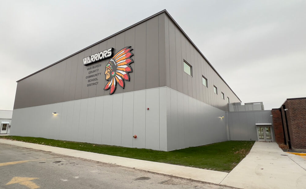 The Van Buren County Community School District selected Carl A. Nelson & Company in 2021 to be its Construction Manager Agent for a $6 million addition project at its junior/senior high school building to expand athletic and classroom facilities at the school. Work began in the summer of 2022, and following a winter break in the project to allow for delivery of equipment amid pandemic-related shortages, resumed in late winter 2023, with completion in the fall of that year.
