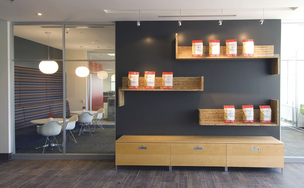 The 14,225 square foot corporate offices were designed as an open office plan providing for greater flexibility and better collaboration among employees. Centralized, enclosed conference rooms were also included for more private meeting spaces. The headquarters also includes a reception area, fitness center, locker rooms, break room and employee common area.