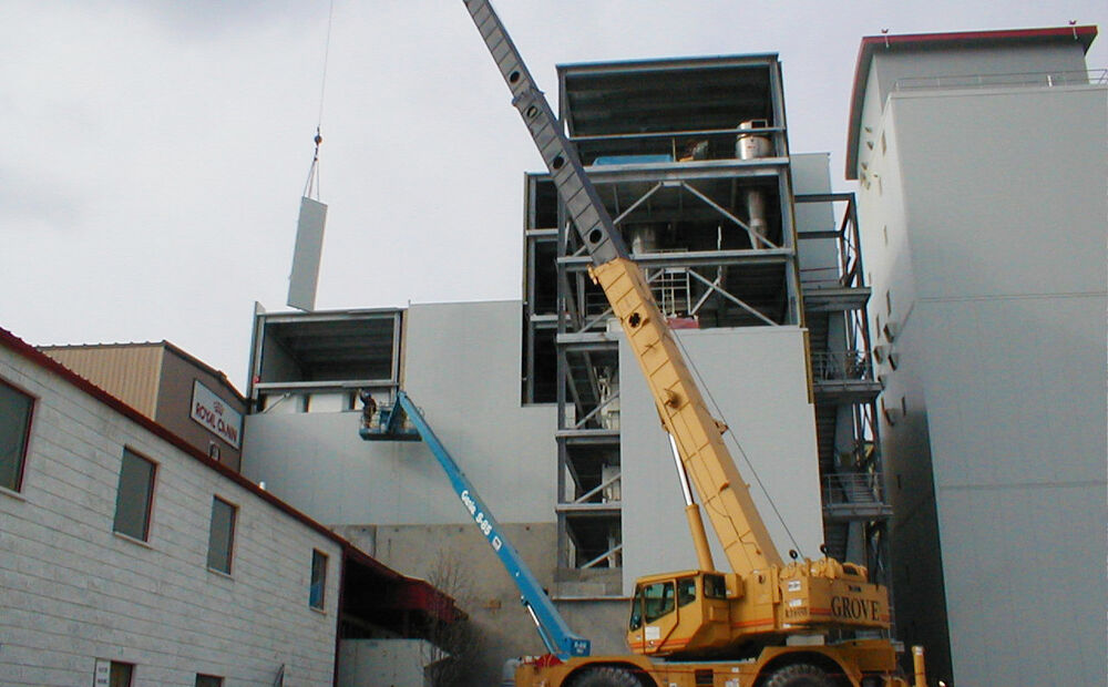 After completion of the Extruder 165 Production Addition and during construction of the grinding/mixing tower, Royal Canin USA selected Carl A. Nelson & Company as their design-build partner on the Extruder 185 Addition. This addition was an extension of the Extruder 165 Production Tower to house an additional extruder line.