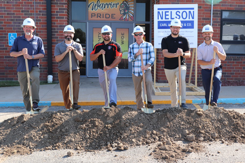 Carl A. Nelson & Company, the construction manager leading the project for the Van Buren County Community School District, brought out a collection of golden shovels July 21, 2022, to facilitate the ceremonial kickoff with School Board members, administrators and others who were in attendance, including representatives of SVPA Architects, which designed the building.
