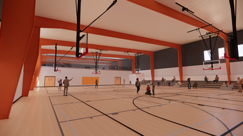 The images above are renderings showing the completed gymnasium, athletics and classroom addition at Van Buren Middle/High School in Keosauqua, Iowa. (courtesy of SVPA Architects)