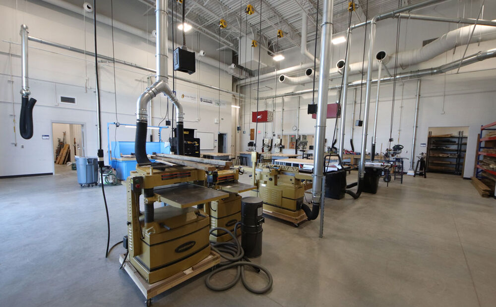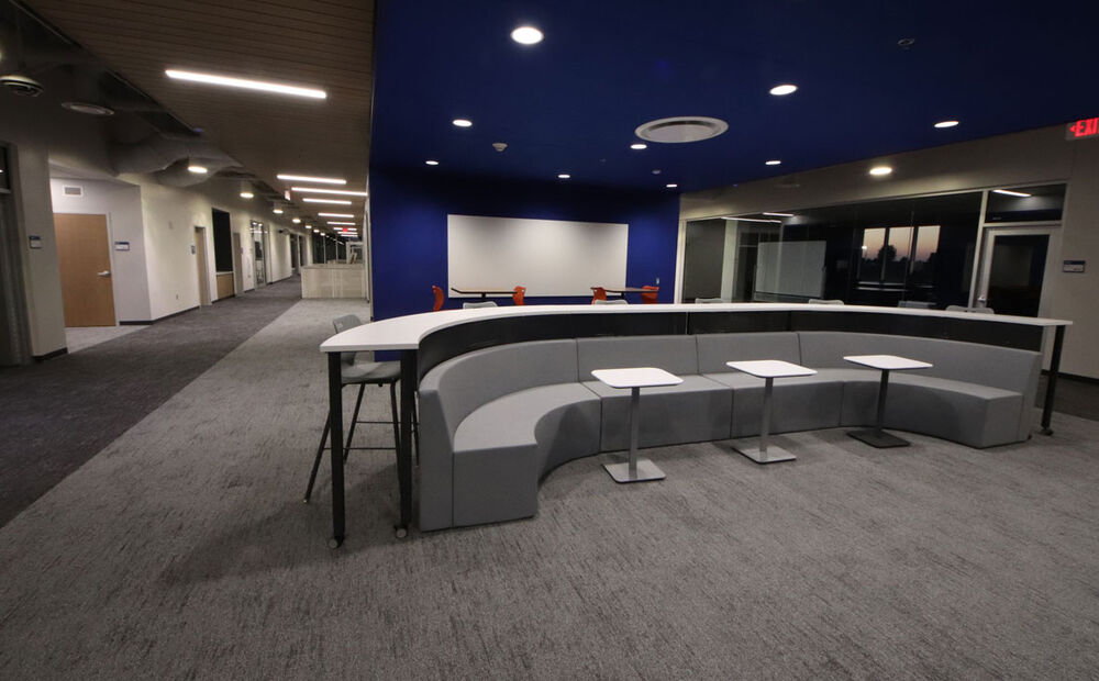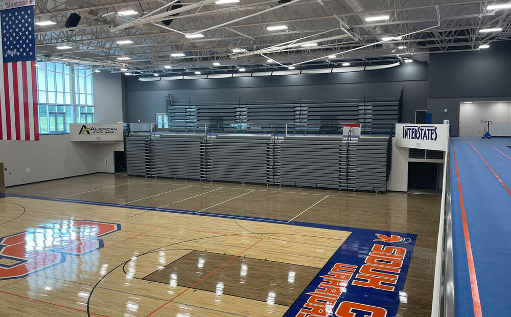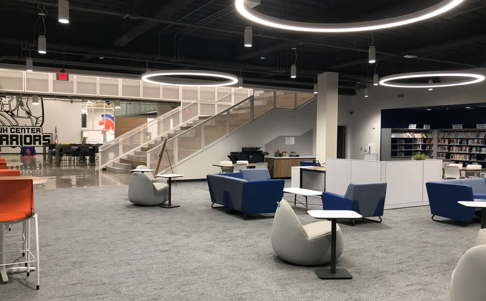 The new, two-story high school includes a sunken gymnasium with space for basketball, volleyball and wrestling, weight training and wellness activities; a main level with classrooms, team rooms, media center, learning stairs, culinary arts, band, choir, art, student services and administration. And a second story with science and lab rooms, PLC area, custodial areas, team rooms and a fashion lab. The career and technical education area includes a robotics lab, digital lab, black box multipurpose theater, ag lab room, maker space lab and woods and welding classrooms.