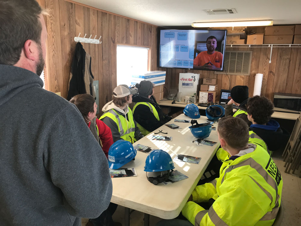 ACE program students from the Workplace Learning Connection out of Kirkwood Community College's Washington County Center with an interest in construction careers listen to a presentation Feb. 14 from Carl A. Nelson & Company General Superintendent Mike Harris, left. (CANCO photo)