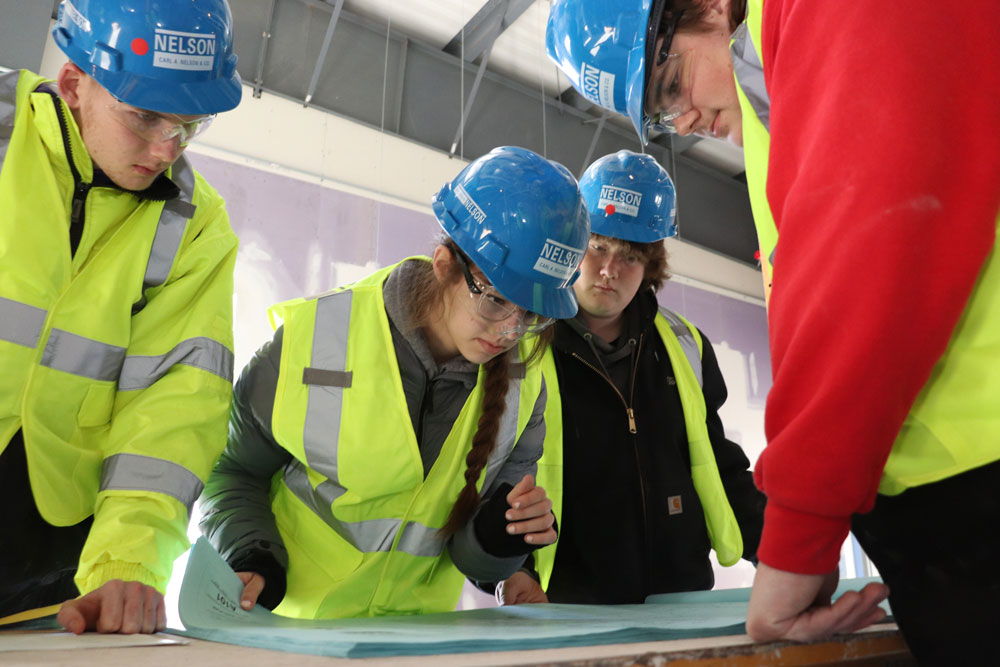 Following their tour, students were broken into teams of three or four and handed plan sets used by CANCO's field and project leaders, as well as subcontractors, to build the project, and were tasked with answering a series of questions based on the documents. Their time at the project site ended after breaking again into groups depending on their interest in engineering or construction. The engineering group learned about career and education options from Morrow and CANCO Vice President of Construction, Chris Smith. The prospective builders heard about careers from CANCO General Superintendent Mike Harris.